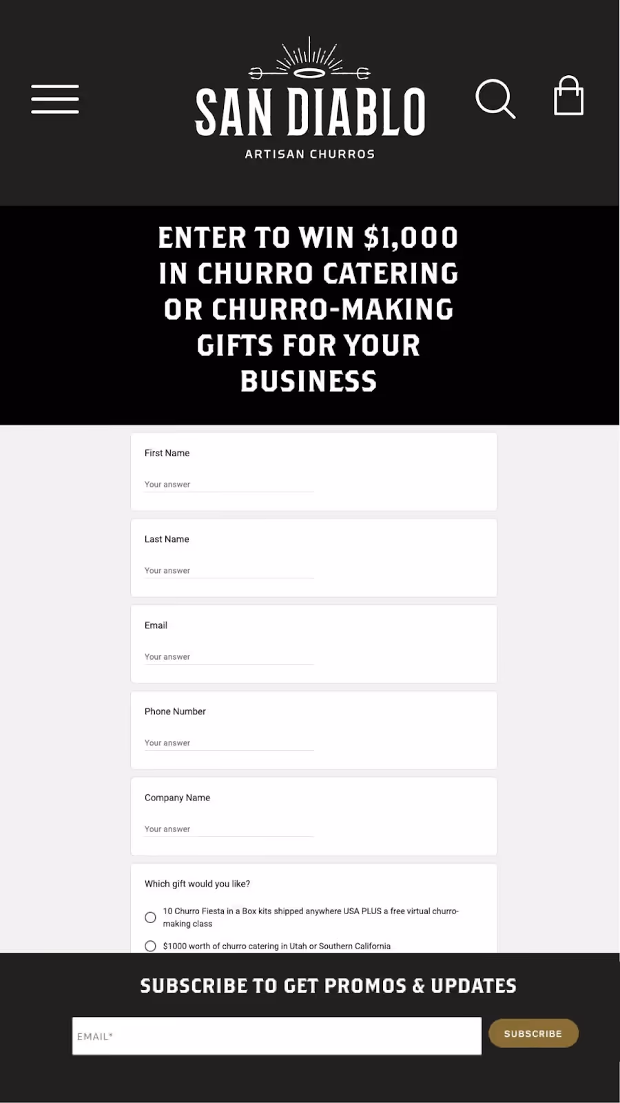 Company Name: By requesting respondents to provide their company name, San Diablo Churros gained insights into the professional backgrounds of their audience, which proved invaluable for tailoring their message.